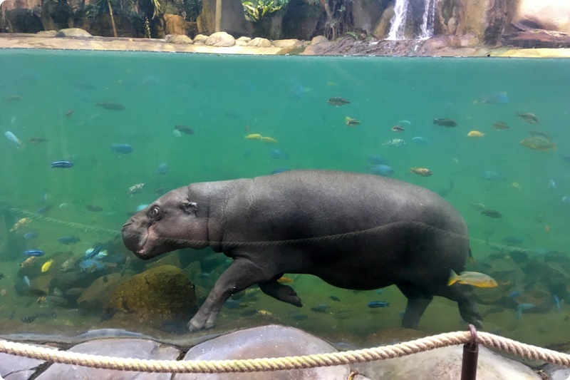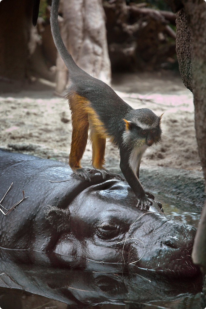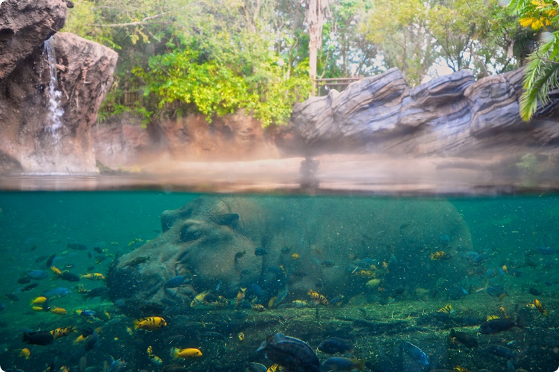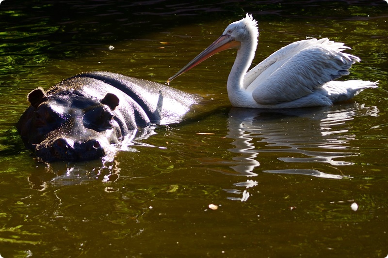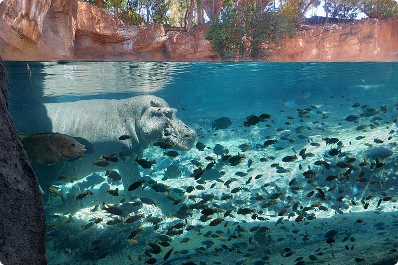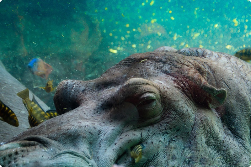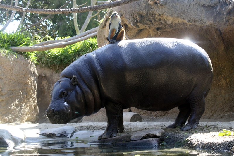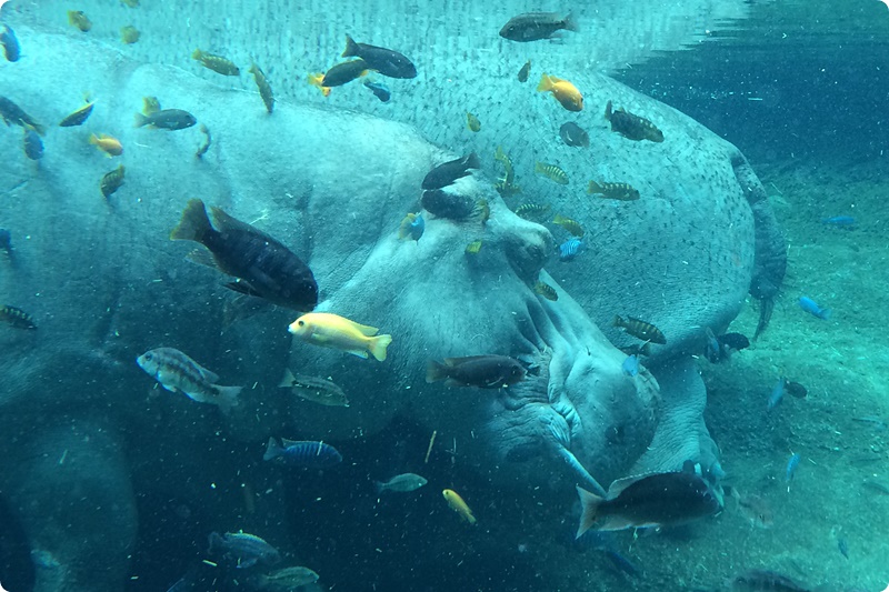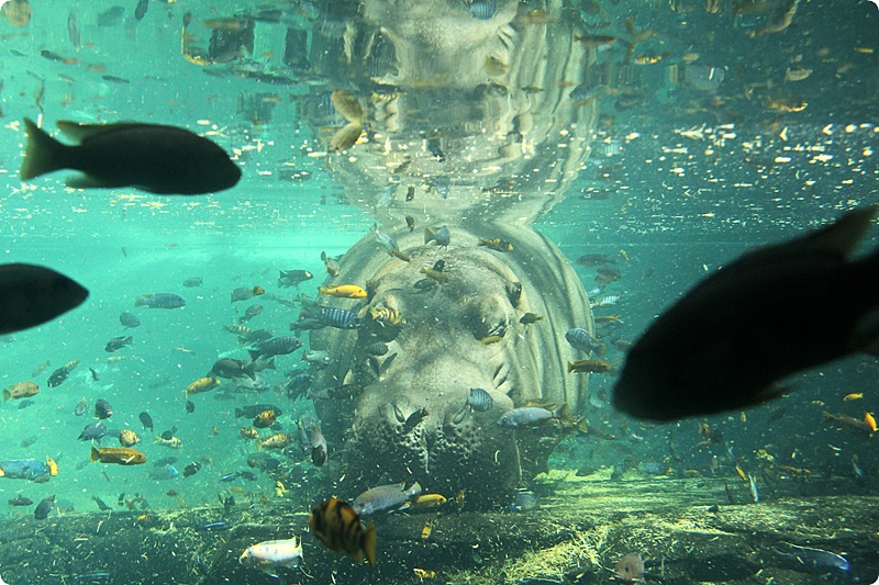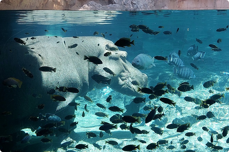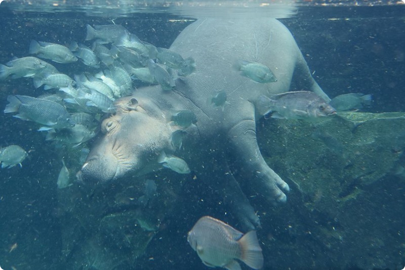 On the basis of the mutualism described above several zoological institutions place African Cichlids in the pond of their Hippopotamus exhibits not only because they both exist in their wild habitats together, but because would like to demonstrate their natural symbiotic relationship where different fish clean the hippos’ bodies which then provides them with a great source of nutrition and additionally help to improve the water quality of the pool.