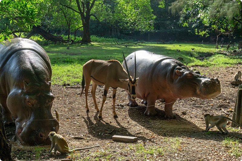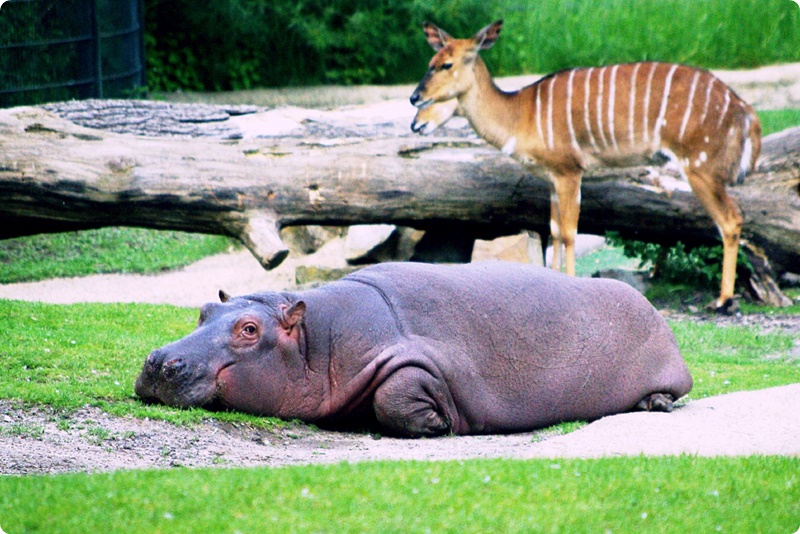 In the list below you can see that both species of hippopotamids have been kept in mixed exhibits in captivity: