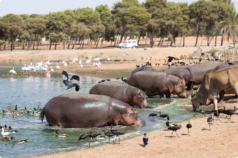 It is also worth mentioning that several zoos have positive experience keeping their Hippopotamuses in exhibits with large lakes where they coexist together with different species of waterfowl, i. e. Parque de la Naturaleza de Cabárceno, Longleat or Greater Vancouver Zoo just to name a few which combinations have not always been mentioned in the list of mixed-species exhibits.