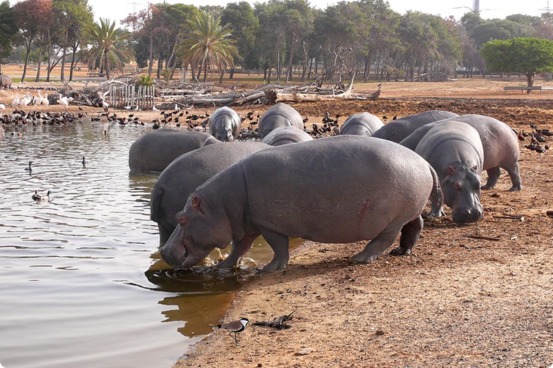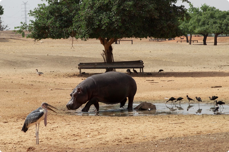 Jerusalem Biblical Zoo kept a single female Hippopotamus in a mixed exhibit with other African species, including Grant’s Zebra, Southern White Rhinoceros, Addax, South African Giraffe, Masai Ostrich and Marabou. The hippo was moved there when she was already old and her mobility was limited so the staff felt confident to put her together with the other species. The hippo died two years ago – at the very respected age of over 59 years old – after living for about 9,5 years in the mixed exhibit without any incidents. Since her death the management has been discussing to introduce young Hippopotamuses into the same exhibit, but this is something that the institution has not done yet, as they feel that with younger individuals there will be a need to first make some major adjustments to the yard to guarantee keeper safety and also that of other species (WERNER 2020, pers. comm.).