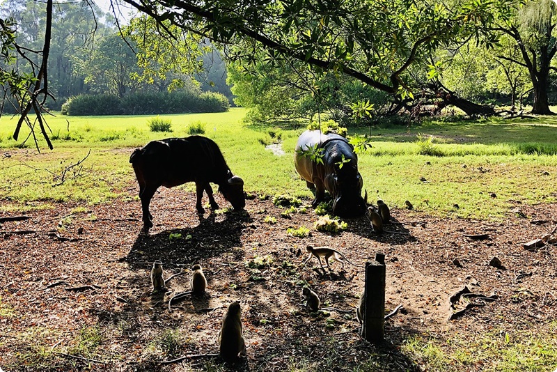 One of the most important questions is to decide whether we would like to breed the species involved in a multi-species exhibit, or which species we want to breed. The practice of zoos keeping hippopotamids in a mixed exhibit shows that the presence of these large animals means potential danger for the other species when they are dominant in the given coexistence. Providing the abovementioned own areas or total separation can be the solution during the time of rearing the young. Furthermore, the behavioural changes of the adult animals during the breeding season must also be borne in mind which may easily lead to fatal injuries. Therefore it is really important to emphasize the possibility of proper separation. Generally speaking it seems to be true that the proper management of breeding in a mixed-species enclosure is more difficult – or sometimes impossible – than in a single-species exhibit. As a result, there is no aim to breed (all) the animals in this type of exhibitry in many cases, so sterilisation and single-sex grouping are also applied techniques in managing. If any of the species has an important breeding programme like SSP or EEP, it is worth to look over and analyse all the mentioned disadvantages before putting the given animals into a mixed enclosure.