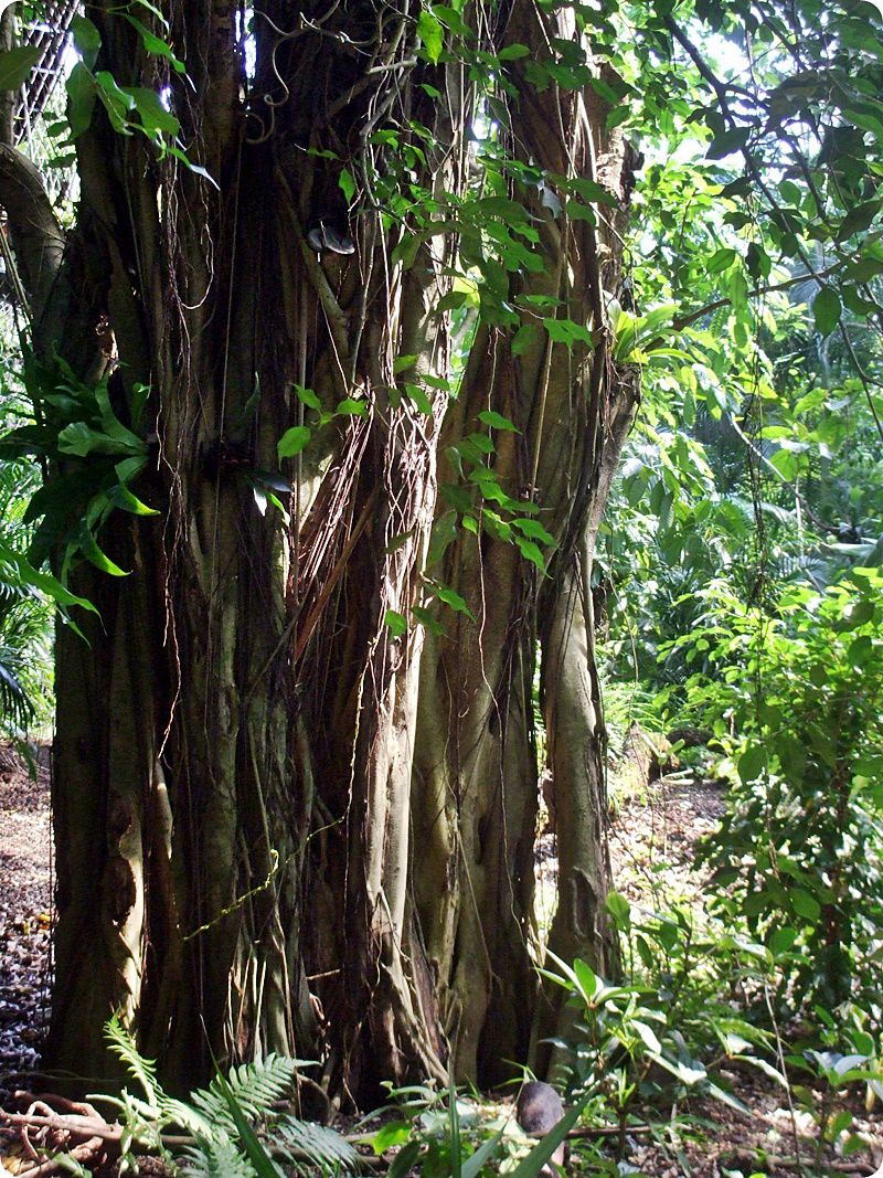 Kb. 100 nagyméretű, 12 méternél magasabb faegyedet telepítettek a csarnokba, melyek elsősorban az eperfafélék (Moraceae) közé tartozó Ficus benjamina és Ficus altissima, az ébenfafélék (Ebenaceae) közé tartozó Diospyros-, valmint a pillangósvirágúak (Fabaceae) Dalbergia-nemzetségébe sorolt taxonok. Ezen fajok, melyek nem honosak Madagaszkáron, afféle átmeneti növényesítési alternatívát jelentenek, hiszen a natív fajok egyedei ekkora méretben nem elérhetőek. Habár e domináns megjelenésű taxonok tekintélyes méretű példányai elsősorban – de nem kizárólagosan – dél- és délkelet-ázsiai elterjedésű növénycsoportok képviselői, mégis közeli rokonságban állnak hasonló, natív malgas fajokkal. Időközben ezen „egzotikus” egyedeket madagaszkári rokonuk váltja a bemutatóban. Továbbá számos itt látható faj ugyan szintén nem a szigetállam esőerdeiből származik, azonban ezek olyan kultivált növények, melyek manapság már szintén elterjedtek a területen.