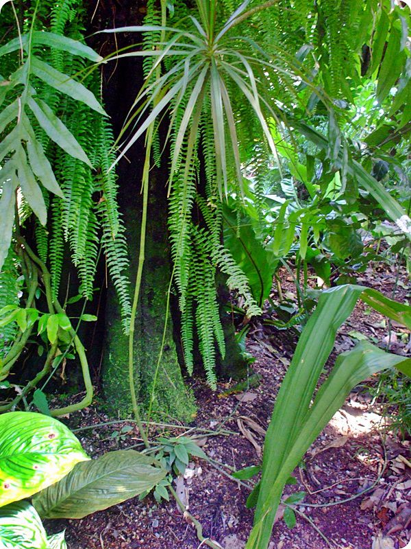 A magas páratartalom számos páfrányfajnak nyújt ideális életteret a mesterséges esőerdőben.