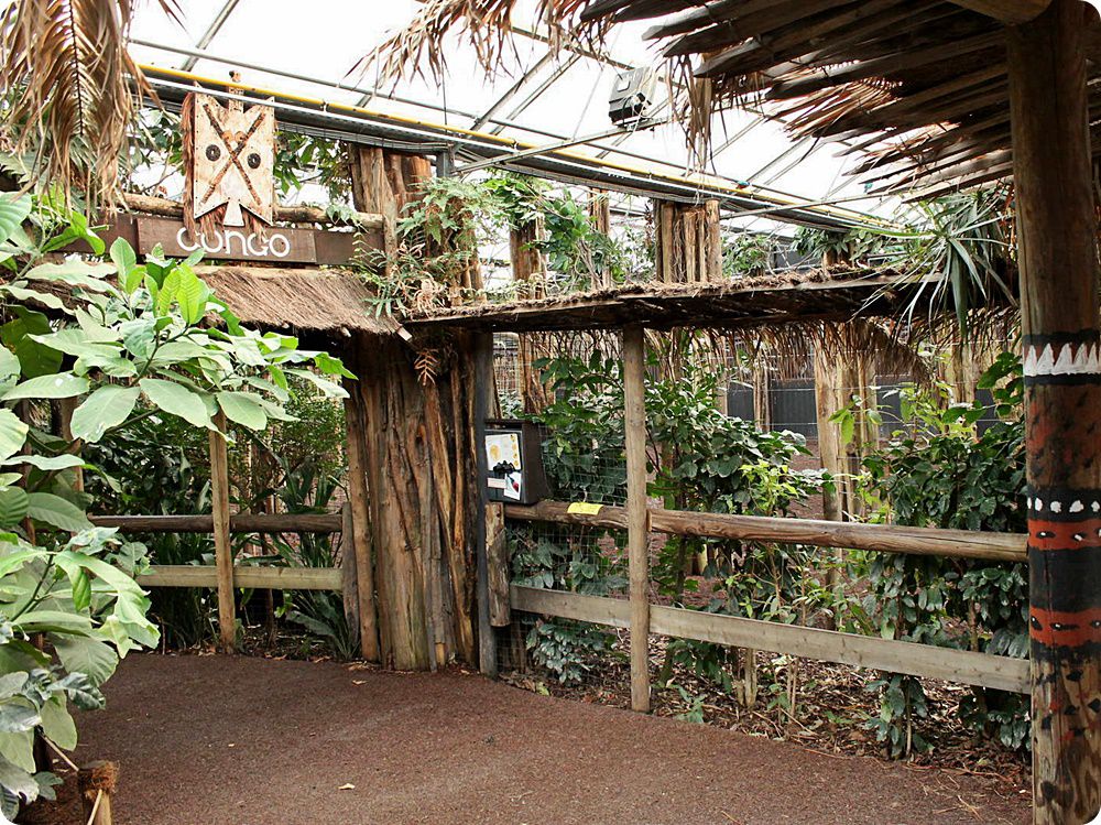 Az állatkert afrikai tematikájú bemutatóit a narancssárga gorilla sziluettel jelzett „Gorilla ösvényen” járhatjuk végig. A felvételen az emberszabásúak kifutója mentén húzódó látogatói útvonal egy részletét láthatjuk.
