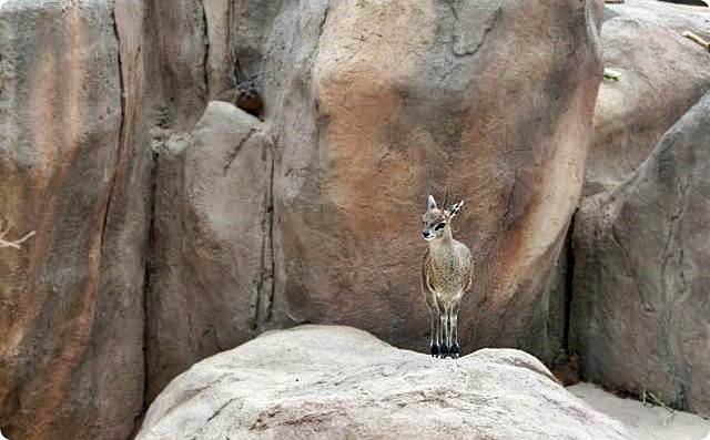 A sziklákon rendkívül fürgén és ügyesen mozgó „akrobaták” szomszédságában egy szintén érdekes életközösséget figyelhetünk meg, ahol szavannalakó tarajossülök (Hystrix africaeaustralis), szurikáták (Suricata suricatta) és sarkantyús teknősök (Centrochelys sulcata) élnek. Ezen túlmenően a nagy csarnok „dinamikáját” tovább fokozza néhány szabad röptű madárfaj.