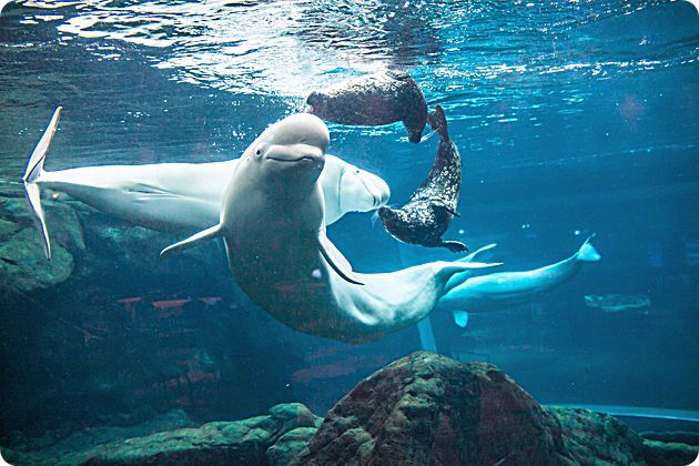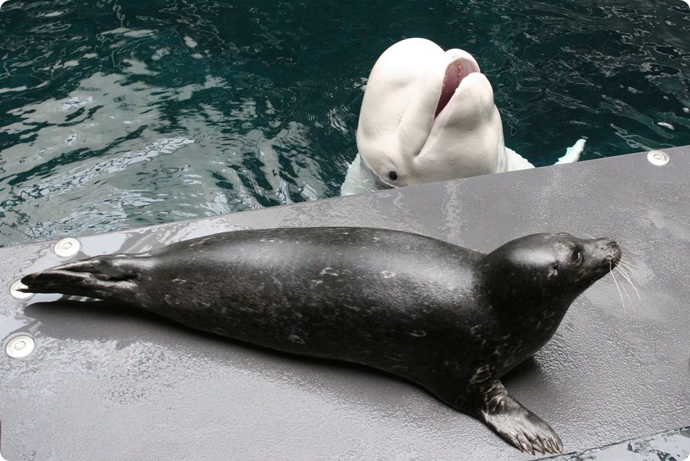 Borjúfókák (Phoca vitulina) és fehér delfinek v. belugák (Delphinapterus leucas)