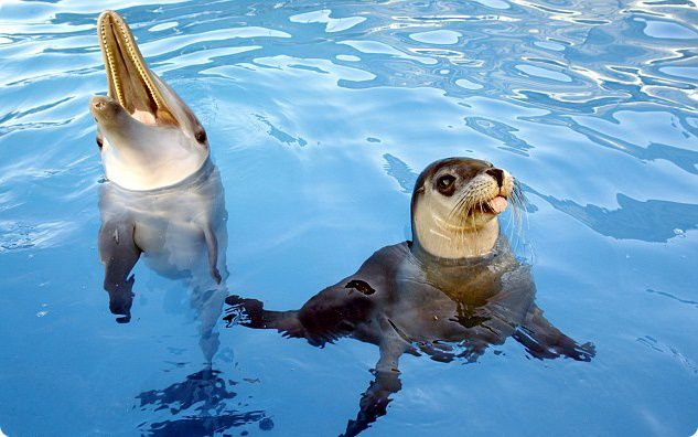 A Nürnbergi Állatkert hosszú évekkel ezelőtt társasmedencében tartotta kaliforniai oroszlánfókáit (1.4) palackorrú delfinjeivel (1.4) (HAMMER 2002). A társítás 1991-ben vette kezdetét, amikor egy fiatal hím oroszlánfóka került beszoktatásra egy fiatal hím és két felnőtt nőstény delfin mellé, majd a későbbiekben változott a fentebb említett csapatösszetételre. Az 1500 m³-es közös medence egy 100 m² nagyságú száraz és fedett résszel is rendelkezett a fókák számára. A bemutató számos játékkal volt felszerelve, s az állatokat naponta többször tréningezték. Gyakori interspecifikus interakció volt a fizikai kontaktus és kommunikáció megléte a fajok között. Szoros szociopozitív interakció volt megfigyelhető a kifejlett hím oroszlánfóka és bizonyos nőstény delfinek között (részben párzási viselkedésre emlékeztetve), valamint egy nőstény oroszlánfóka és egy másik nőstény delfin között (játékos viselkedés). A többi egyed ritkán ugyan csatlakozott ezekhez a „párokhoz”, de jellemzően inkább saját fajtársaikkal történő interakciókban vettek részt. Az újszülött oroszlánfókák a delfinektől szeparáltan nevelkedtek, kivédve azok játékos magatartásából adódó „bántalmazását”. Mindkét fajt külön-külön tréningezték és etették (ZIEGLER 2002). A fókák számára lehetőség volt „visszavonulni”. A fajokat elkülönítették az etetés alatt, valamint az oroszlánfókák utódnevelési időszakára egyaránt. A dél-afrikai medvefókák szintén közös bemutatóba kerültek egy ideig az intézmény delfinjeivel, ám számottevő interspecifikus viselkedés nem volt megfigyelhető (HAMMER 2002).
