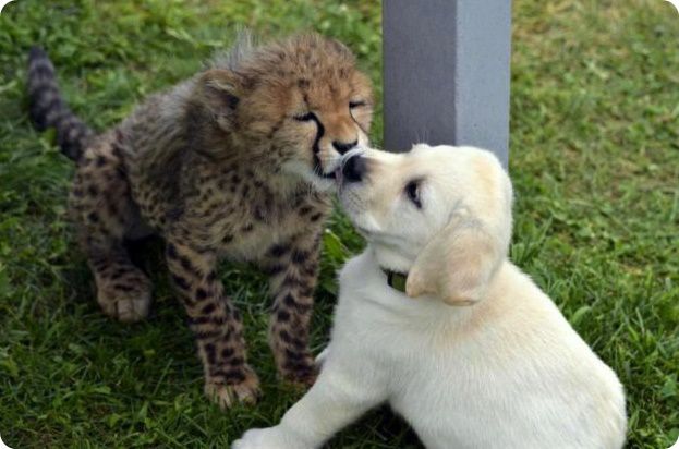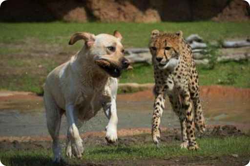A fogságban tartott gepárdok viselkedésére számos esetben jellemző az idegesség és nyugtalanság bizonyos fokú tünetegyüttese, mely csökkenti a fajhoz kapcsolódó állatkerti tenyészmunka eredményét. Ezen a ponton lép be viszonylag új kezdeményezésként a kutyákkal történő összeszoktatás. Az Amerikai Egyesült Államok egyre több állatkertje, mint például a San Diego Zoo Safari Park, Columbus Zoo, Dallas Zoo és Wildlife Safari saját kutyatársaságot biztosít gepárdjainak az állatok mentális és fizikai jóléte érdekében, mely a tapasztalatok alapján sikeresen működik. Az összeszoktatás a korai szocializáción alapszik, így a gepárdot és leendő kutyatársát kölyökkorukban, eleinte rácson keresztül ismertetik egymással, majd az összeférhetőségüknek megfelelően a későbbiekben pórázon. Amint gondozójuk megfelelően stabilnak érzi a két faj kapcsolatát, a program keretében gyakran hagyják együtt a két állatot egy nagyméretű, futásra, kergetőzésre, sprintelésre alkalmas területen, mely rendkívül hasznos a gepárdok mentális és kondicionális jóléte szempontjából.