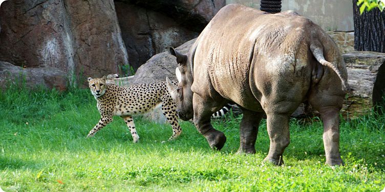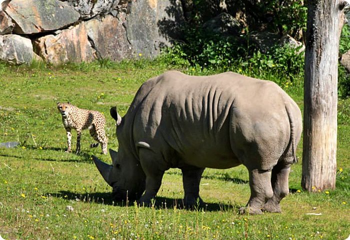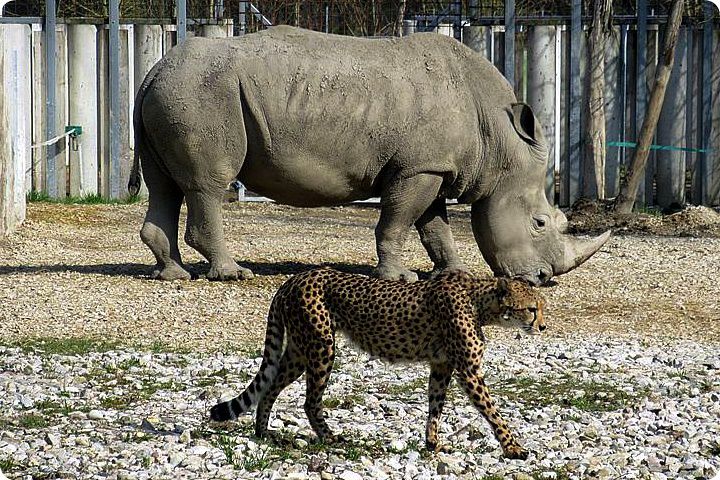 Dél-afrikai gepárd (Acinonyx jubatus jubatus) és déli szélesszájú orrszarvú (Ceratotherium simum simum)