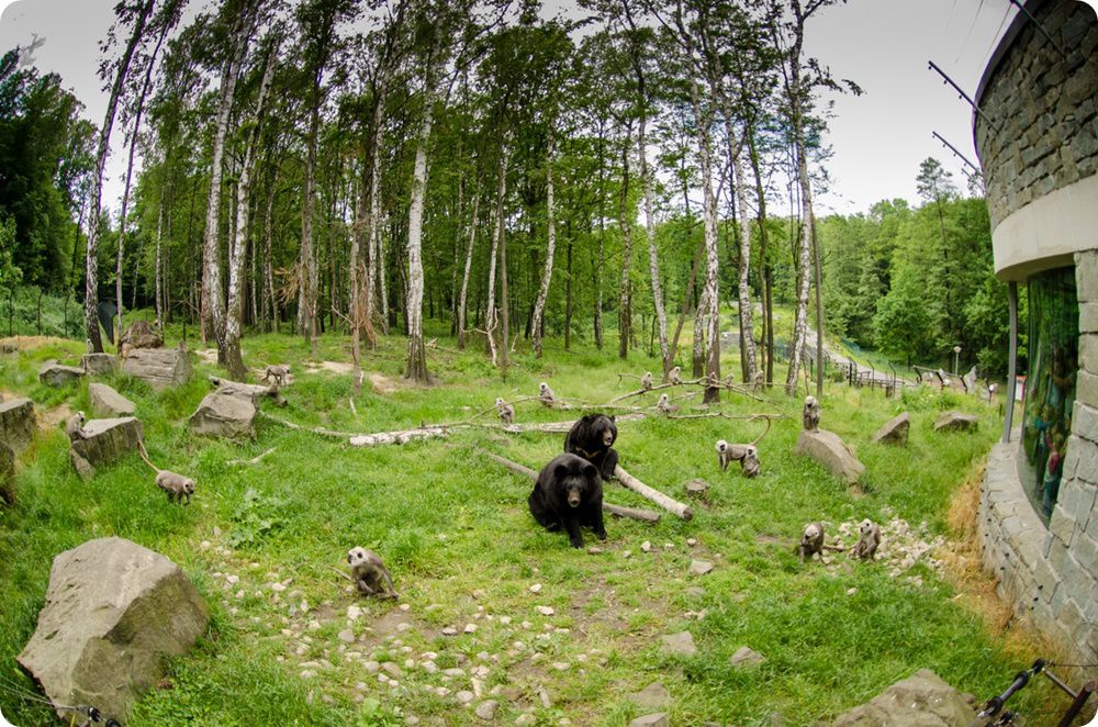 Pápaszemes medve (Tremarctos ornatus) vízidisznók (Hydrochoerus hydrochaeris), ázsia kiskarmú vidrák (Aonyx cinereus), egy dél-amerikai tapír (Tapirus terrestris), valamint egy feketefejű pókmajom (Ateles fusciceps) társaságában