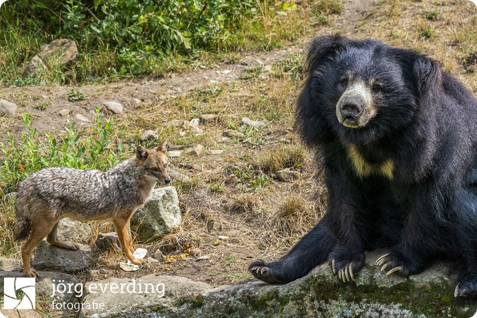 Ajakos medve (Melursus ursinus) és aranysakál (Canis aureus) Rheine-ben