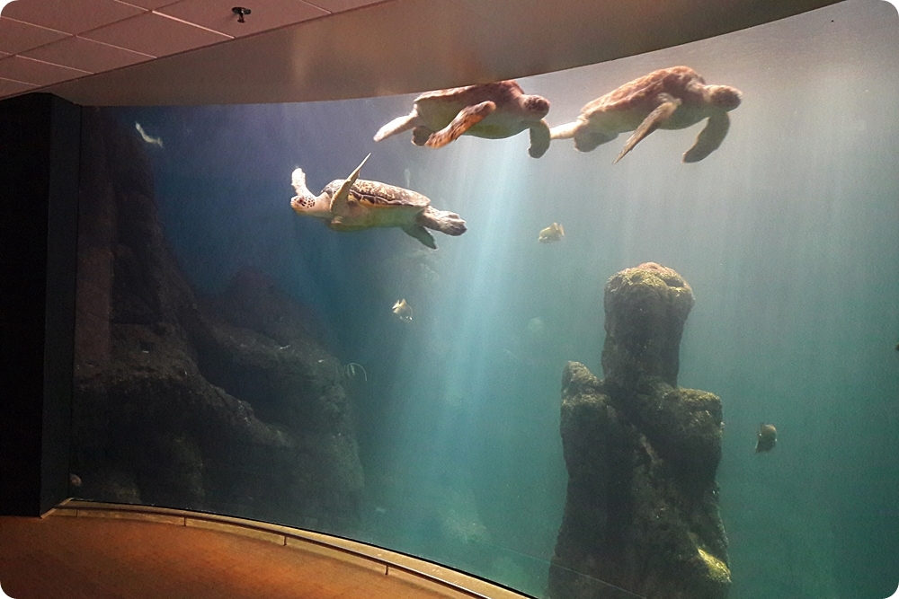 Az állatbemutatók sorát a sarkantyús teknősök (Centrochelys sulcata) ötfős csapatának beltéri kifutója zárja a kijáratnál.